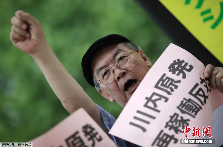 日本民众抗议川内核电站1、2号机组通过安全审查