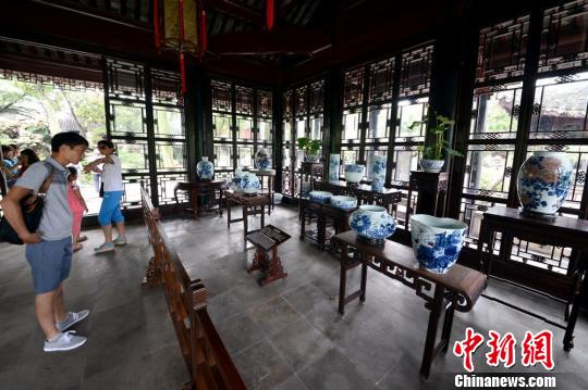 7月16日,一场荷花题材的“陶瓷艺术作品展”亮相苏州拙政园,荷花、喜鹊、菊花、鸳鸯等元素在陶瓷器皿上栩栩如生,让游客在游览古典园林的同时,领略中国画的笔墨神韵与陶瓷工艺的完美融合。据了解,此次展览共展出了各色陶艺器皿57件,其中大、小型陶艺作品各23件、34件,作品均出自江苏省工艺美术大师、陶瓷艺术大师杨丽华之手。