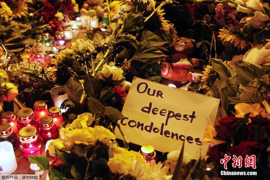 7月17日,乌克兰基辅,民众们手持鲜花和蜡烛在荷兰驻乌大使馆前悼念马航MH17事故遇难者。综合外媒报道,当地时间7月17日,马来西亚航空公司 MH17航班在俄乌边境坠毁。多方消息称,飞机是被击落的。截至目前,此次客机坠毁事故尚未发现任何生还者的迹象,据称,该架飞机上所载人数为298人,而此前报道称飞机上共载295人。由于此次事件可能导致地面人员伤亡,总共的遇难人数将超过300人。