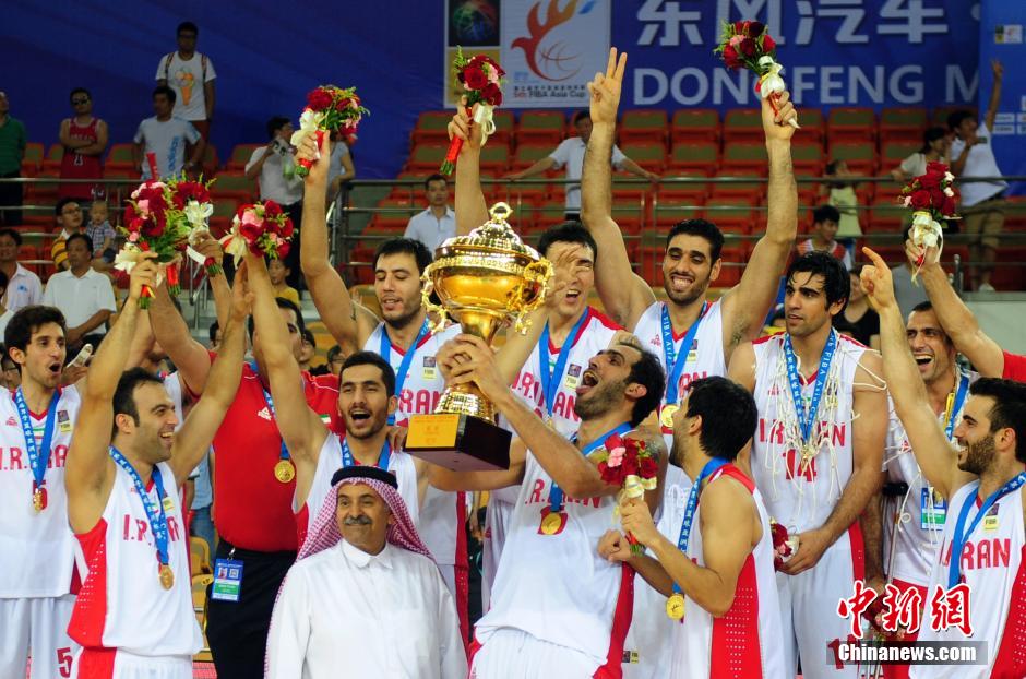 7月19日晚,伊朗队的哈达迪亲吻冠军奖杯。当晚,第5届男篮亚洲杯在武汉进入决赛角逐。伊朗男篮以89-79战胜中华台北男篮,成功卫冕。中新社发 张畅 摄