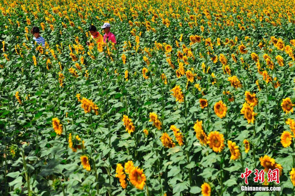 7月20日,来自国内外的知名摄影师被甘肃民勤沙漠绿洲上的近万亩葵花所吸引。正在武威市民勤县举行的第三届中国向日葵文化旅游节,连日来吸引了包括国内外几十家媒体记者、知名摄影师、漫画家及向日葵产业专家、学者、企业家等在内的数百位“游客”慕名而来。 杨艳敏 摄