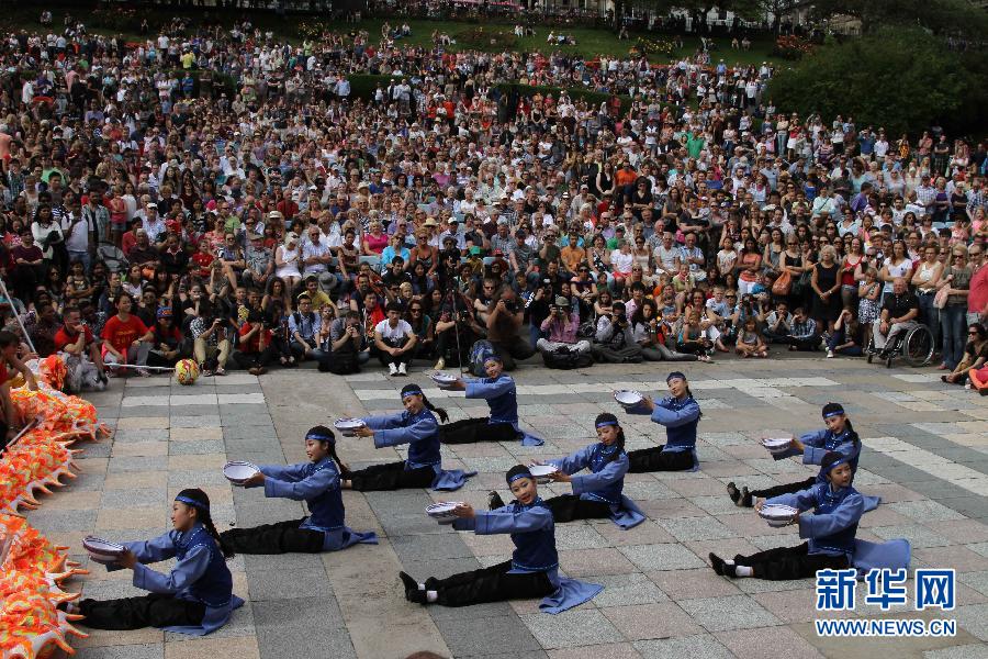 7月20日,中国北京金帆艺术团表演者参加英国爱丁堡艺术节开幕式嘉年华活动。