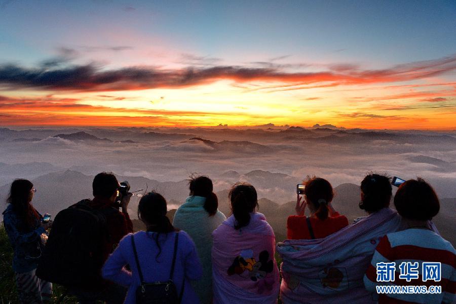 盛夏时节,众多游客来到福建省福安市海拔1400多米的白云山,观赏日出胜景。 新华社记者 张国俊 摄