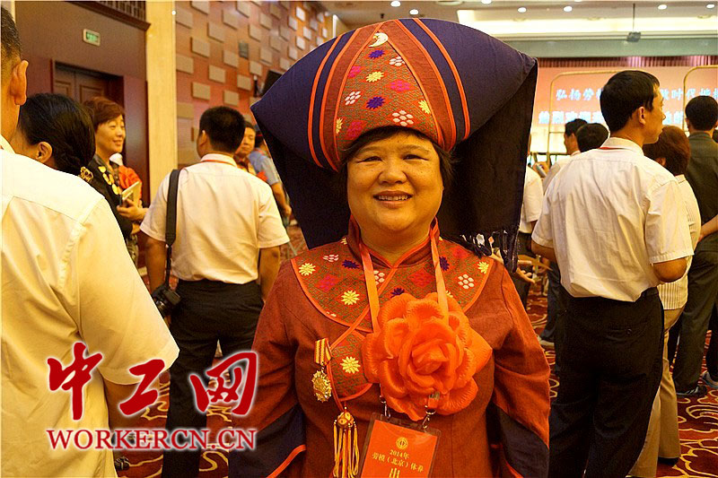 与以住不同的是,本次劳模休养按照中央八项规定精神和有关厉行勤俭节约的要求,减少了一些参观考察活动。第一批休养新增了全国劳模包起帆同志作《如何发挥劳模作用、弘扬劳模精神》主题宣讲和国家行政学院研究员李清泉教授就《中国优秀传统文化与社会主义核心价值观建设》作专题讲座。图为广西省南宁市第四人民医院感染科护士长杜丽群。为了参加此次休养,她特意选择了这身庄重的家乡壮族民族服饰。中工网记者 葛姗 摄