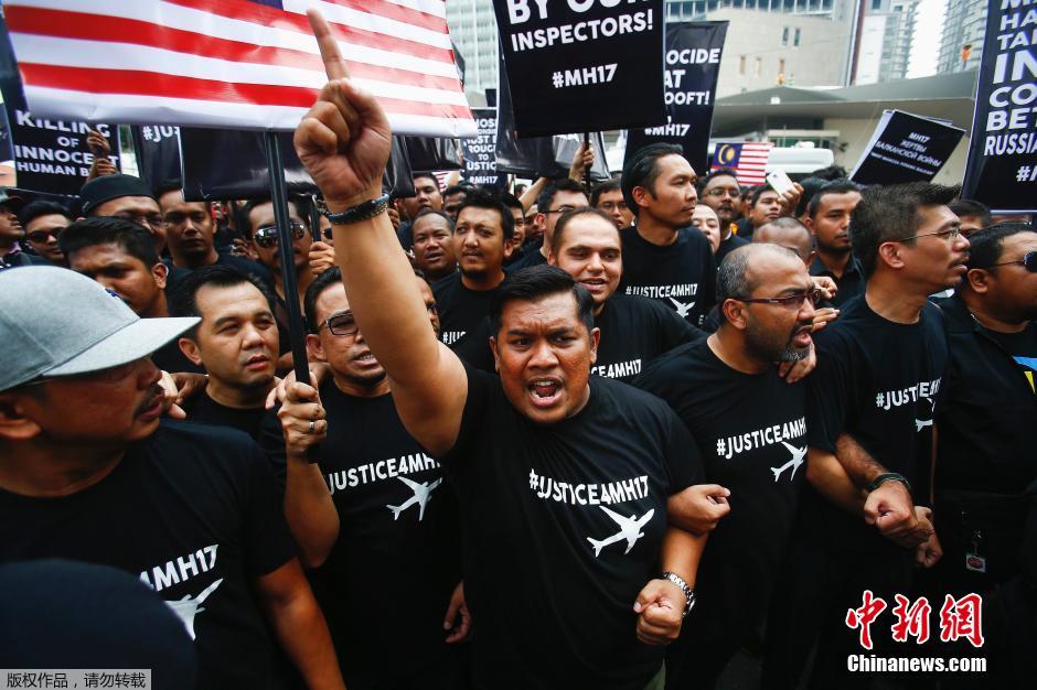 当地时间7月22日,马来西亚青年约500人前往俄罗斯、乌克兰驻马大使馆和联合国驻马办事处抗议,要求将MH17肇事者绳之以法。中新社发 赵胜玉 摄