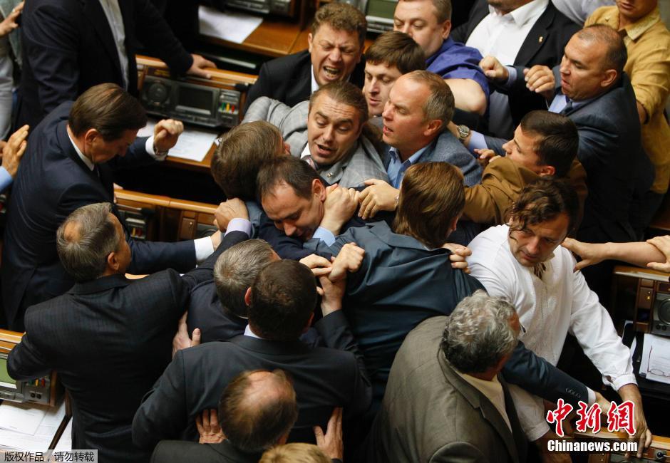 乌克兰议会上演“全武行” 执政党通过总统法令