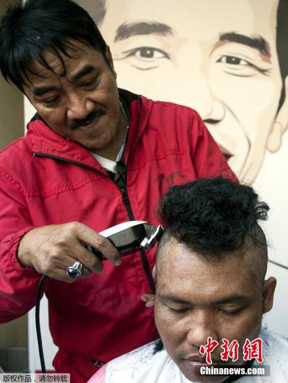 印尼民主党佐科威赢得大选 支持者削发庆祝