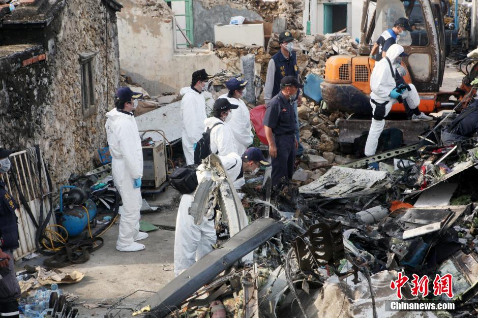 7月24日,台湾澎湖湖西乡西溪村空难现场,搜寻清理工作正在进行。台湾复兴航空一家客机23日傍晚从高雄飞澎湖马公机场时,重飞失败而在当地失事,造成机上58位乘客和机组人员目前有48人死10人伤。 中新社发 黄少华 摄