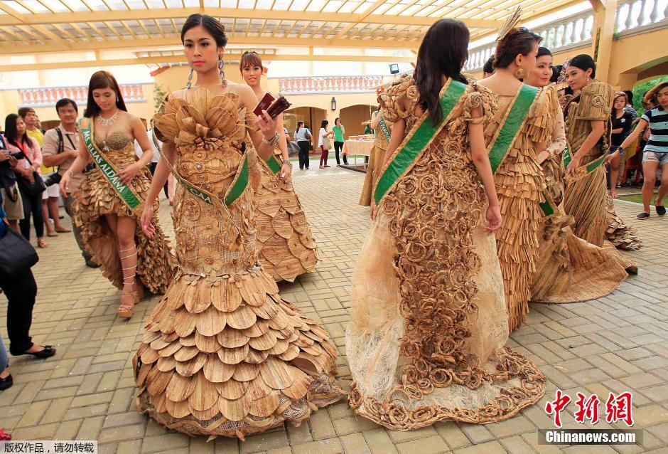 当地时间7月24日,菲律宾马尼拉,睡莲小姐选美大赛候选人身穿由干睡莲叶子制作的礼服展示自己。据组织者称,睡莲小姐选美大赛是为了庆祝一年一度的睡莲节。