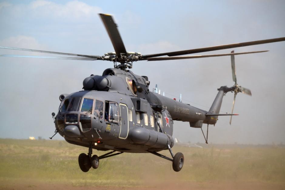 当地时间5月27日,“航空飞镖—2014”战机比赛在俄罗斯沃罗涅什举行,将有来自各军区航空编队和俄空军的71个机组参加,在开幕式上,俄罗斯主力战机将升空表演。图为MI-8直升机。