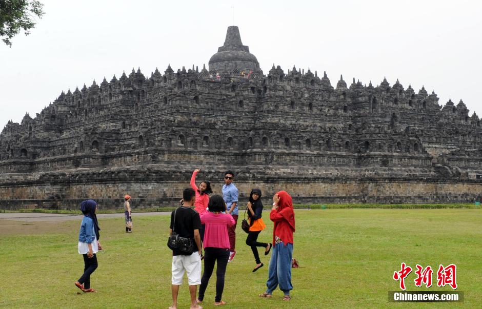 夏日,位于印尼爪哇岛的中部有一座古老的建筑——婆罗浮屠塔,成为印尼国内外游客的旅游热点之一,每天的游客络绎不绝。作为世界上最大的佛塔,婆罗浮屠以其悠久的历史、宏大的规模、俊秀的建筑,成为人类宝贵的文化遗产。婆罗浮屠塔位于印尼日惹以北默拉比火山的一个山丘上,约建于公元八世纪初,底座长123米,宽113米,高42米,用去约二百万块打磨好的火山岩石块。这座气势恢宏的佛塔与中国长城、埃及金字塔及柬埔寨的吴哥窟一道,被誉为古代东方的四大奇迹。1991年底,婆罗浮屠也被列入联合国教科文组织的世界遗产名录。刘可耕 摄