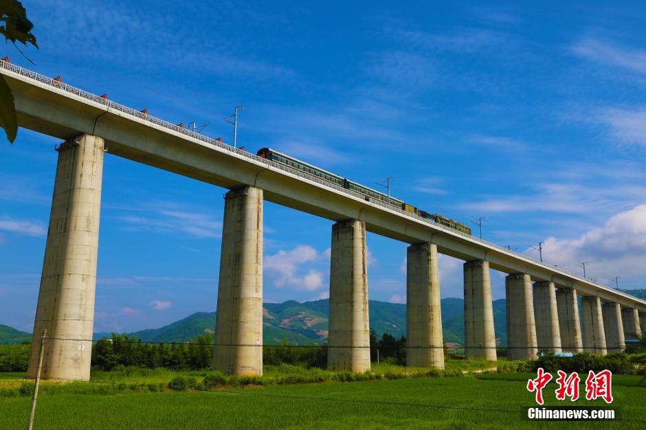 7月28日,合福高铁闽赣段铺轨贯通,距离通车运营又近了一步。合福高铁将串联黄山、婺源、三清山、武夷山等风景名胜区,成为闽赣皖三省最具发展潜力的旅游黄金走廊。合福高铁是京福快速铁路通道的重要组成部分,自安徽省合肥市起,经黄山进入江西省,经婺源、德兴、玉山、上饶穿越武夷山进入福建省,经建阳、建瓯、南平、古田、闽清到达福州。李南轩 摄