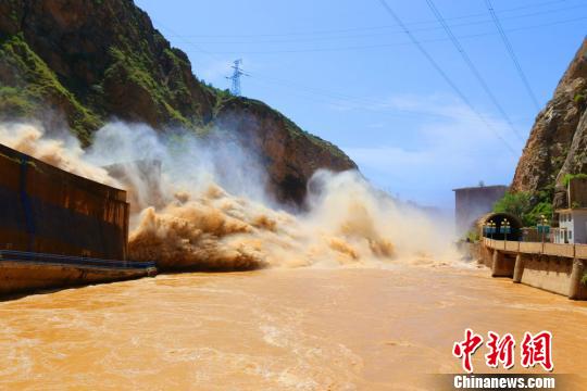 7月28日,刘家峡水电厂开始异重流排沙,排沙期间,夹裹着大量泥沙的水流相继从泄水道、排沙洞、泄洪洞出口喷涌而出,场面壮观。 侯齐 摄