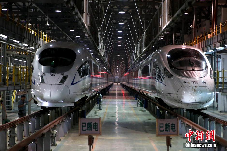 济南动车所于2011年7月1日正式投入运营,主要承担京沪高铁、胶济客专时速300公里动车组运用检修工作,对动车组内外部进行全面检查、维修、保养、整备,并实时监控动车组运行状态,处理突发故障。记者7月30日凌晨探访济南动车所检修库,揭开动车组“4s店”的神秘面纱。梁犇 摄