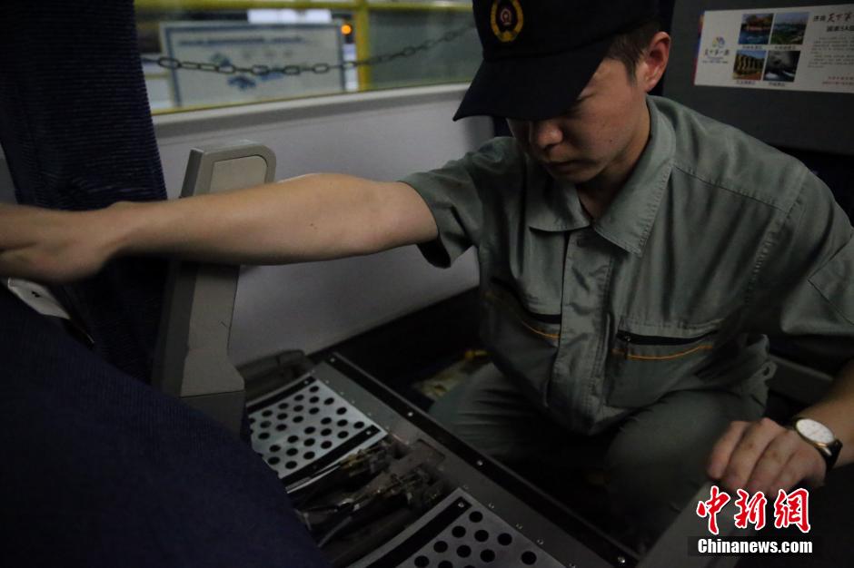 通过晃动座椅便能判断座椅靠背内部固定螺栓状态,是济南动车所地勤机械师米庆的“看家本事”。座椅靠背螺栓更换比较复杂,需要将座椅拆卸,日常检修作业中每班处理故障座椅20余个。梁犇 摄