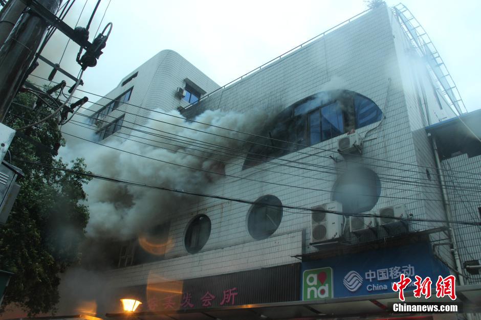 7月31日,绵阳市涪城路一茶楼突发大火,火苗顺着窗户不断往外冒,燃烧形成了几十米高的滚滚浓烟覆盖着天空上方,并不时传出“嘭嘭”的爆炸声,严重威胁着周边群众生命财产安全。市119指挥中心接到群众报警后,迅速调派8辆消防车、40余名官兵赶赴现场进行处置。经过紧张救援,现场大火被扑灭,火灾造成该茶楼三楼被完全烧毁,所幸未造成人员伤亡。图为消防官兵现场救援。 杨超 摄