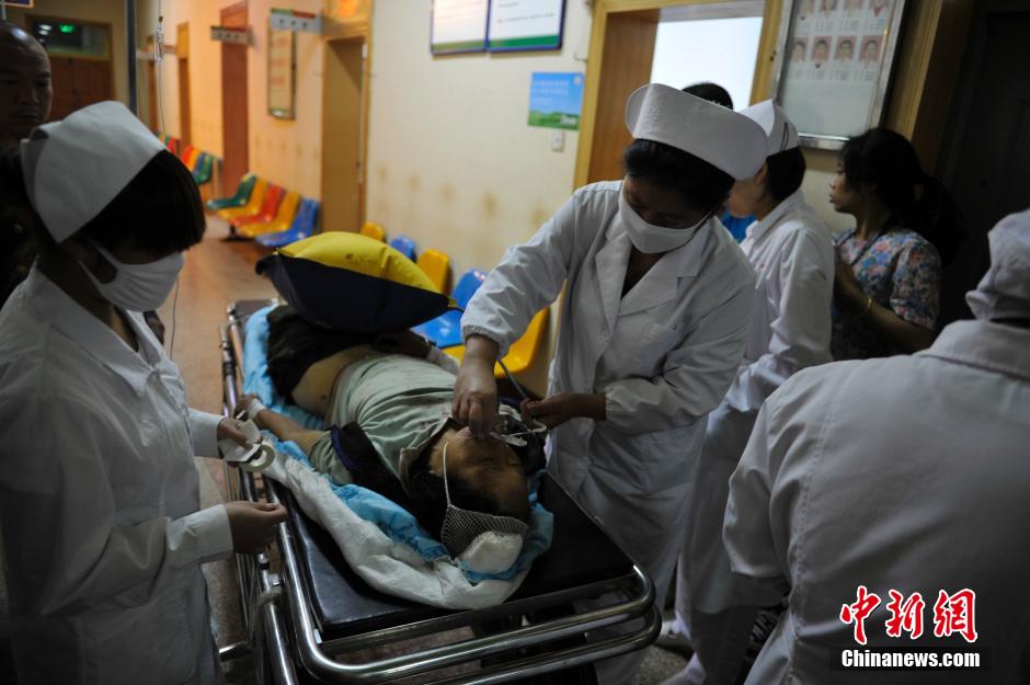 8月4日,会泽县人民医院正在救治地震伤员。3日,一场6.5级地震袭击云南,昭通鲁甸、巧家及曲靖会泽等地受灾严重。中新社发 刘冉阳 摄