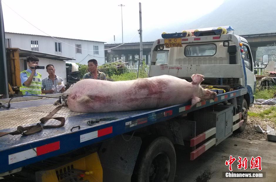 8月4日,浙江诸永高速往温州方向龙岩头隧道内,一头母猪在隧道内乱窜,驾驶员在隧道内抓猪,过往车辆纷纷紧急避让。据了解,驾驶员今早出发前为防止母猪路上逃脱,特地用7、8块竹排车后厢围住,没有料到被太阳暴晒后,母猪情绪变得如此疯狂,力量十分惊人,并肆意在高速公路的快车道和慢车道上穿梭。他和同行的两个人根本控制不住,幸好交警和施救人员及时赶到,化解了险情。 中新社发 虞柏承 摄
