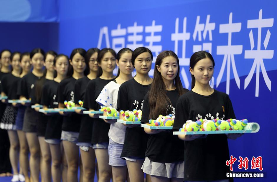 南京青奥会开幕在即 礼仪志愿者忙“颁奖”