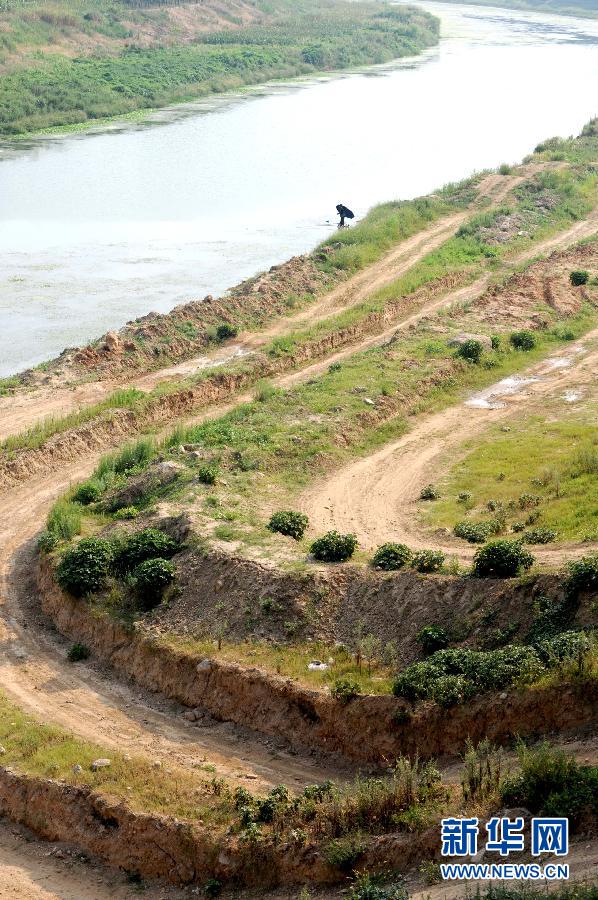 河南漯河境内的沙河河道径流锐减,河床裸露(8月5日摄)。新华社记者 朱祥 摄