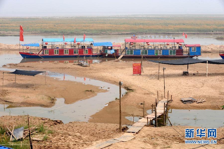 黄河干流来水量不足,郑州花园口黄河断面大面积河床裸露(8月2日摄)。新华社记者 朱祥 摄