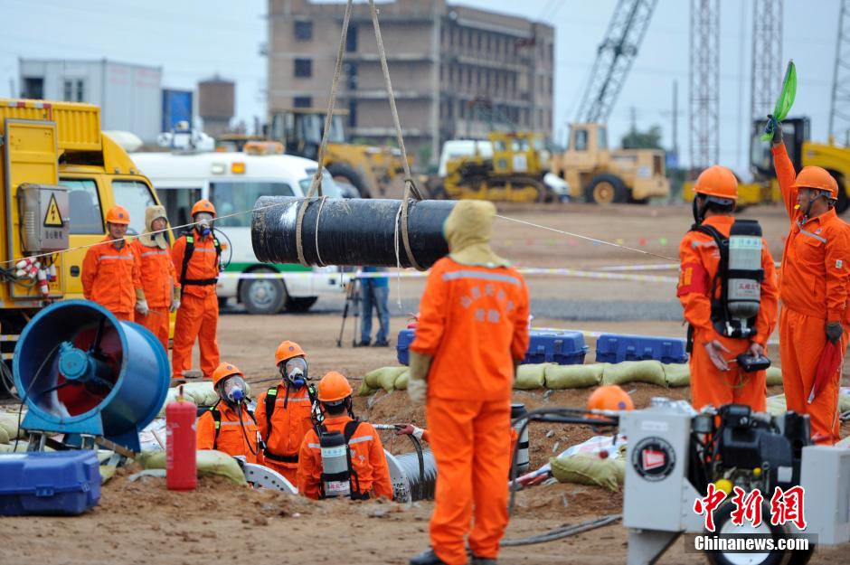 8月6日,山西晋中,公安消防联合天然气抢险等多部门进行天然气泄漏事故安全抢险演练,加强相关突发事件的快速处理能力。 中新社发 韦亮 摄
