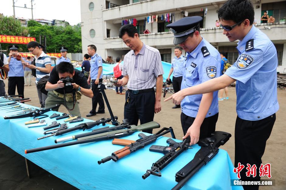 深圳警方销毁一批仿真枪、管制刀具等危险品