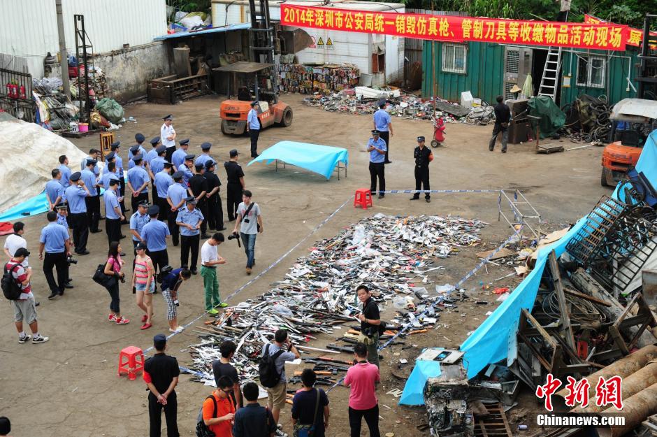深圳警方销毁一批仿真枪、管制刀具等危险品