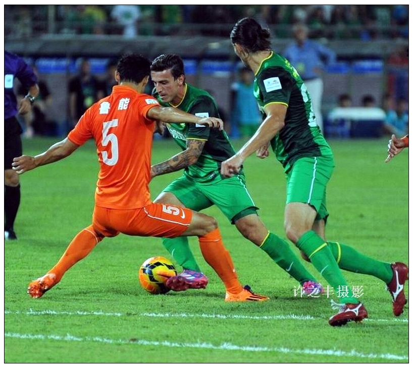 2014年8月6日晚,2014中国足协杯四分之一单场淘汰赛北京国安主场对阵山东鲁能的比赛,90分钟双方战为1比1平,点球战中鲁能5罚5中从而以点球战5比3,总比分6比4淘汰国安,晋级足协杯四强。在比赛中场休息时山东鲁能的替补队员冲到场内围攻裁判,最后裁判在保安护送下走出场,队员围攻裁判的场面给观众造成了很坏的影响。工人日报-中工网记者许之丰摄影报道