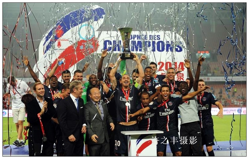 2014年8月2日20时,第19届法国超级杯在北京工人体育场展开角逐,法甲冠军巴黎圣日耳曼队2比0击败法国杯得主甘冈队,实现二连冠,也是第四次夺冠。工人日报-中工网记者许之丰摄影报道
