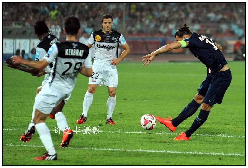 2014年8月2日20时,第19届法国超级杯在北京工人体育场展开角逐,法甲冠军巴黎圣日耳曼队2比0击败法国杯得主甘冈队,实现二连冠,也是第四次夺冠。工人日报-中工网记者许之丰摄影报道
