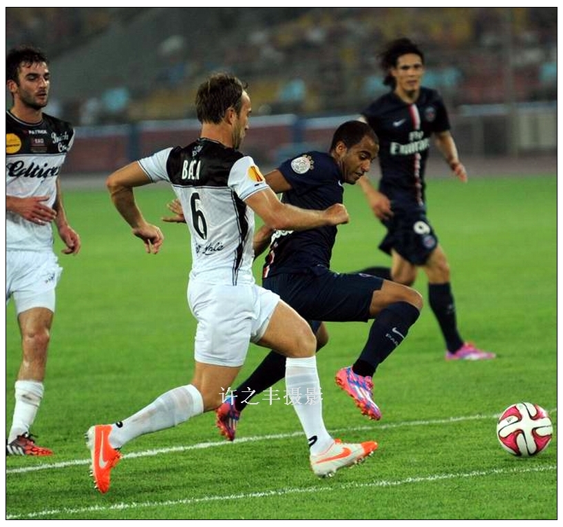 2014年8月2日20时,第19届法国超级杯在北京工人体育场展开角逐,法甲冠军巴黎圣日耳曼队2比0击败法国杯得主甘冈队,实现二连冠,也是第四次夺冠。工人日报-中工网记者许之丰摄影报道
