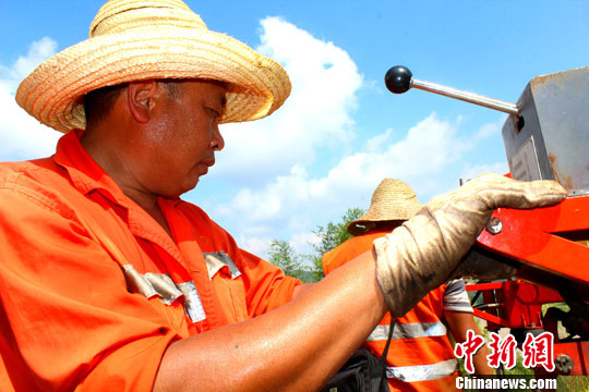 图为在烈日下工作的铁路工人。邬倔林 摄