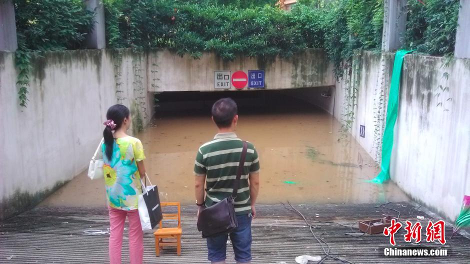 湖北宜昌遭暴雨袭击 小区地下车库被水灌满