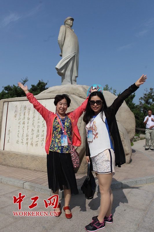 2014年8月7日上午,80余名来自全国教育系统的劳模游览了北戴河鸽子窝公园,随后乘坐“长城号”游轮海上观光。图为全国劳模们在鸽子窝留影。中工网记者 范治林 摄