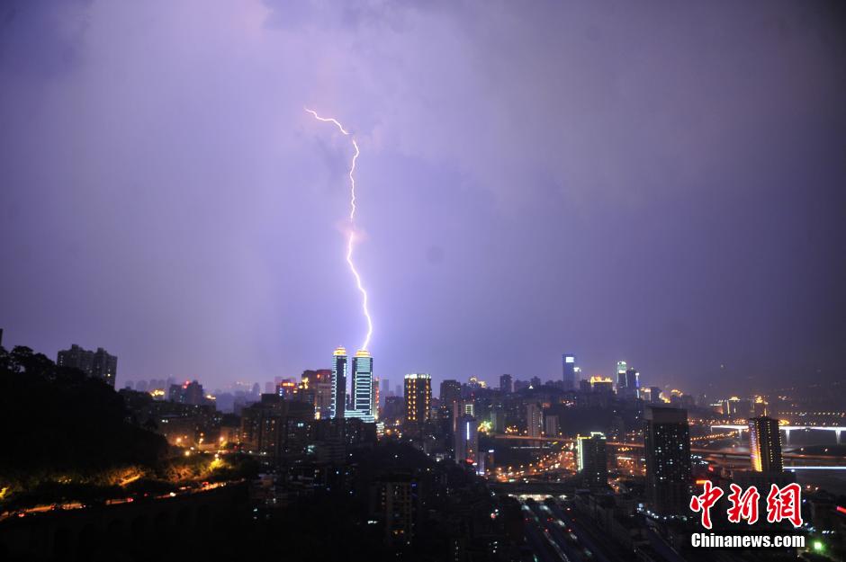 8月7日晚,立秋之日,连日高温超40℃的火炉重庆,迎来雷电交加,短暂的降雨为主城带来一丝清凉。 陈超 摄