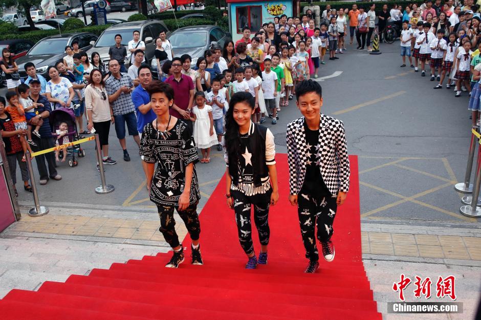 8月8日,“榜样少年”颁奖盛典获奖少年代表开场红毯秀。当日,2014首届“榜样少年”的”大型公益活动颁奖盛典在北京举行。经过两个多月专家评委的审核,近百位榜样少年代表荣获“榜样少年”称号。中新社发 韩海丹 摄