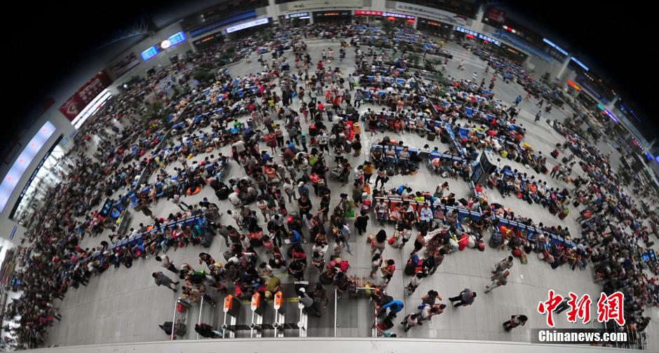 8月9日,旅客在沈阳北站候车。沈阳北站日发旅客近7万人次迎来暑运高峰。7月份,全国铁路客流日均达到731万人,为今年以来最高的一个月,比6月份增加了82万人。中新社发 于海洋 摄