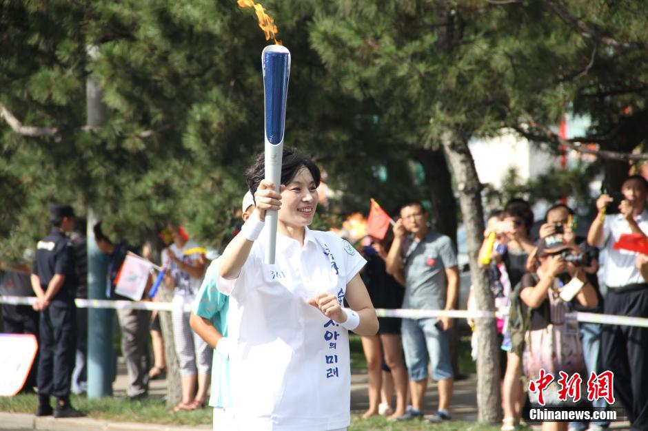 韩国仁川亚运会火炬在中国威海传递