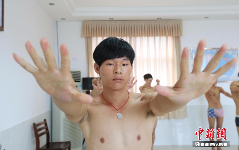8月12日,在广西融安县武装部兵站,医务人员在对适龄青年进行外科身体检查。当日,融安县2014年夏秋季征兵体检工作正式启动,372名通过初检、初审的适龄青年在县人民武装部兵站进行外科、内科、口腔科、视力、心理测试等20余项目内容身体检查。据了解,今年征兵将实行新的体检标准,身高、体重、视力都有所放宽;对原来的政治审查程序进行简化,主要以适龄青年近年的实际表现为主。全国征兵网对大学生及高校新生报名时间将延长至8月25号。谭凯兴 摄