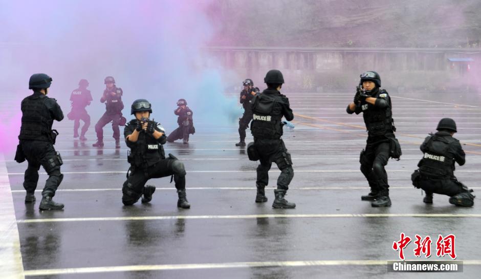 8月12日,四川省达州市组织公安、武警、民兵及卫生系统等多部门在市公交公司举行联合反暴恐处突拉动演练功。本次演练采取“不设预案、不打招呼、不搞预演、贴近实战”的形式进行,接警后,现场指挥长立刻下达指令,启动应急预案,市局特警支队、巡警支队、应急处突预备队、交警支队等部门人员火速赶赴现场。队伍现场集结完毕后,还进行了反暴恐科目实战演示:公安技能教官、特警队员合演了《枪械实战操作》,武警支队表演了《战术基础动作》,公安特警表演了《小组战术掩护队形》,公安特警和武警官兵合演了《暴恐事件现场处置》。曾猛 摄
