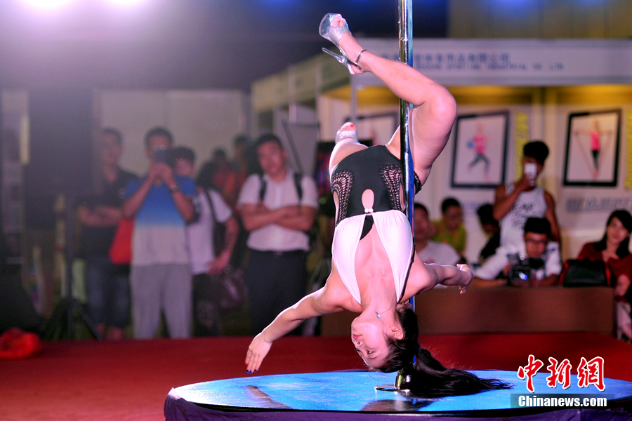 8月12日,2014“Chinafit中国健身大会”在北京国家会议中心举行。当日,第五届全国健身明星大赛上演火热钢管舞秀,参赛选手现场展示各自才艺的同时也与现场观众分享了健身所带来的快乐与激情。 中新网记者 金硕 摄