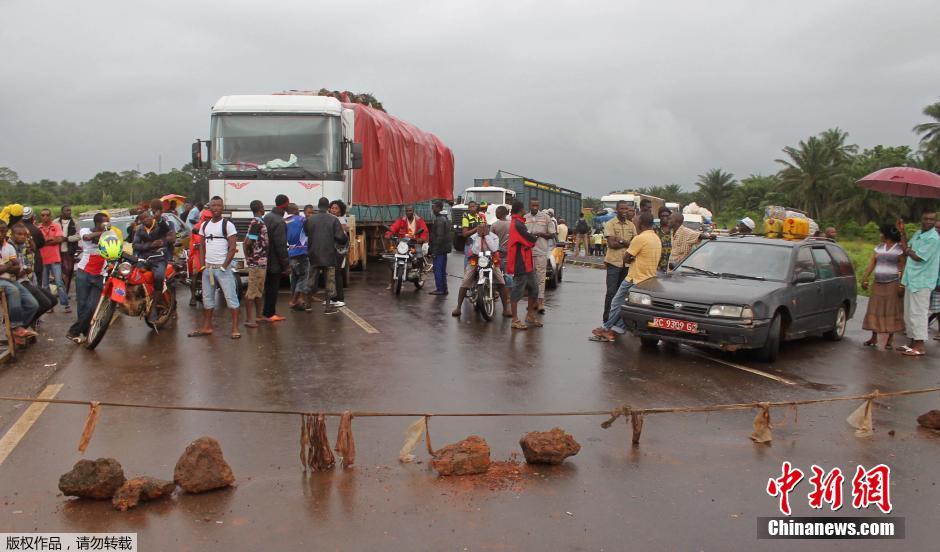 当地时间8月12日,几内亚格巴拉姆亚-帕姆拉普,几内亚于周末封锁了与塞拉利昂接壤的边境,以制止致命的埃博拉病毒进一步扩散。两边原本计划过境的民众和货物只得停留在原地。