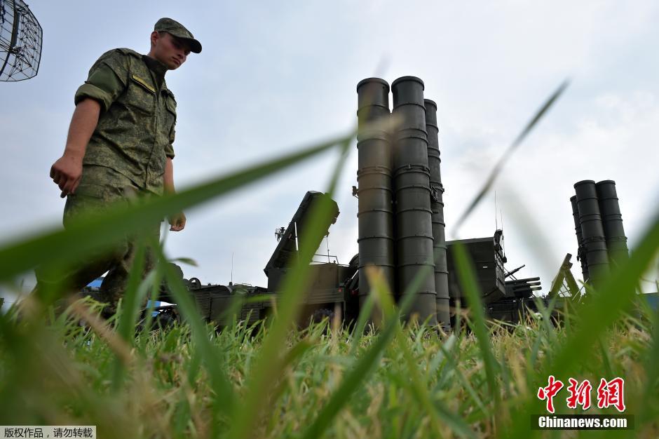 当地时间2014年8月13日,俄罗斯茹科夫斯基,俄罗斯Oboronexpo 2014军备展在当地举行,俄罗斯军方防空系统S-400“凯旋”防空导弹系统亮相。图为S-400“凯旋”防空导弹系统亮相。