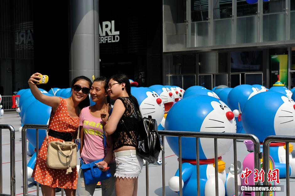 8月13日,哆啦A梦在成都IFS广场现身,受民众热捧。安源 摄