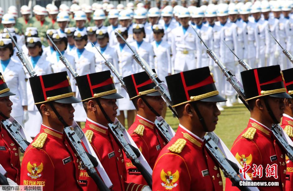 当地时间2014年8月17日,印度尼西亚雅加达,印尼总统苏西洛·班邦·尤多约诺出席独立宫举行的印尼独立日升旗仪式。