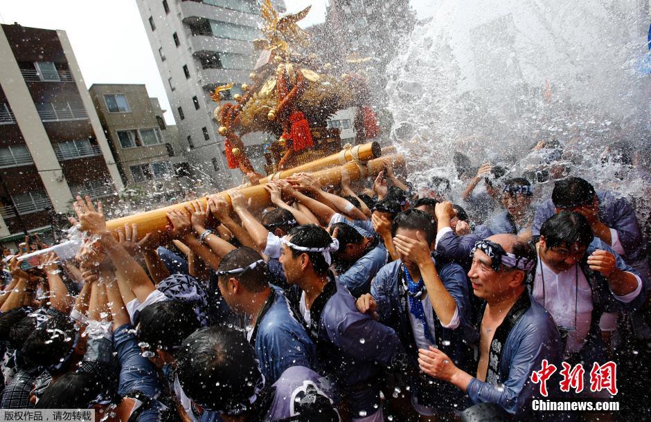 当地时间8月17日,日本东京,深川八幡祭庆典举行。深川八幡祭是江户三大祭典之一。祭典期间,人们抬着神龛在上街巡游,观众会不时向抬着神龛的巡游队伍泼水,也令这个祭典获得了“泼水节”的别号。