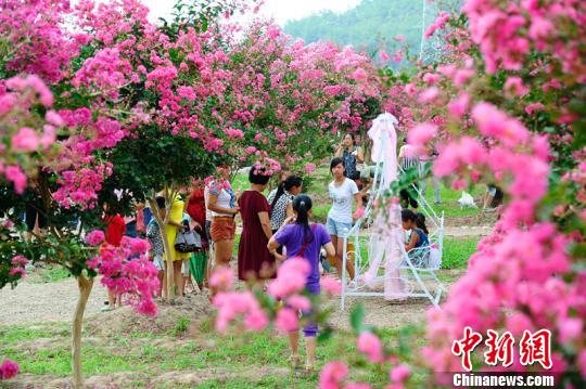 8月16日,浙江台州仙居首届紫薇花节在该县白塔镇茶溪村开幕。