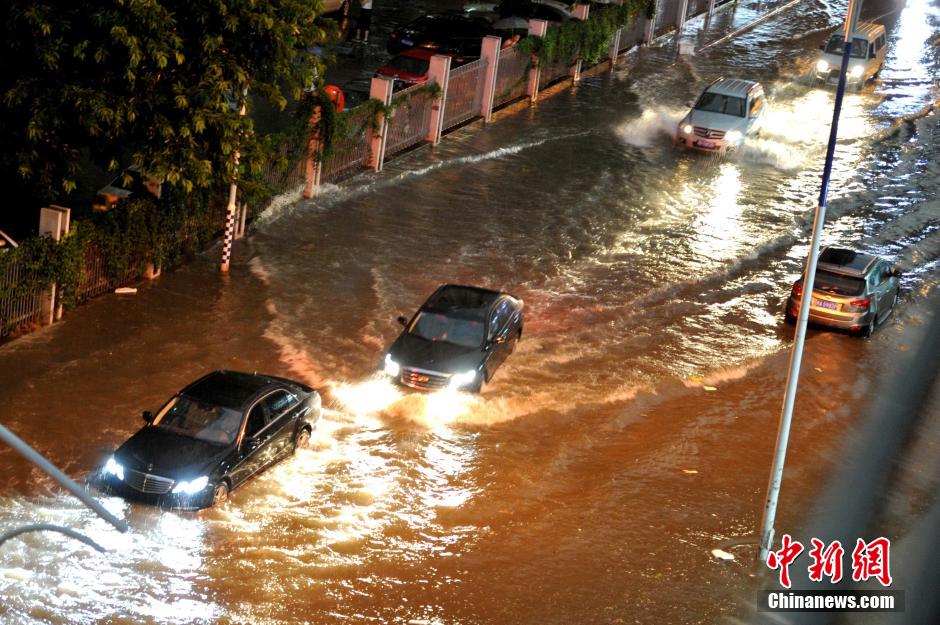 8月17日晚,福州突下大暴雨,市区许多路段又现“水漫金山”景象。中新社发 王东明 摄