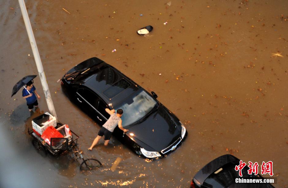 8月17日晚,福州突下大暴雨,市区许多路段又现“水漫金山”景象。中新社发 王东明 摄